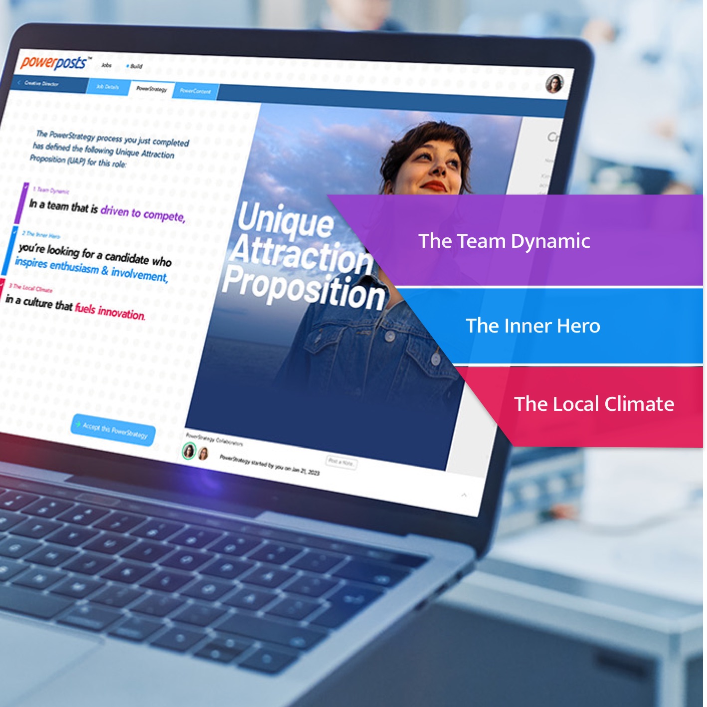 That’s why PowerPosting puts you inside the heads of Ideal Fit candidates. Speaking to their Inner Hero — the thing they value most about themselves and want to be valued for at work. It creates posts that speak directly to how your ideal candidates think, what drives them, and the unique contribution they’re burning to make.